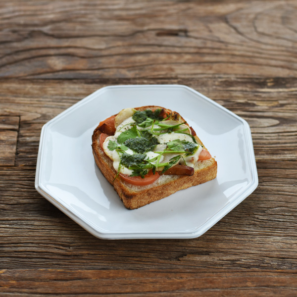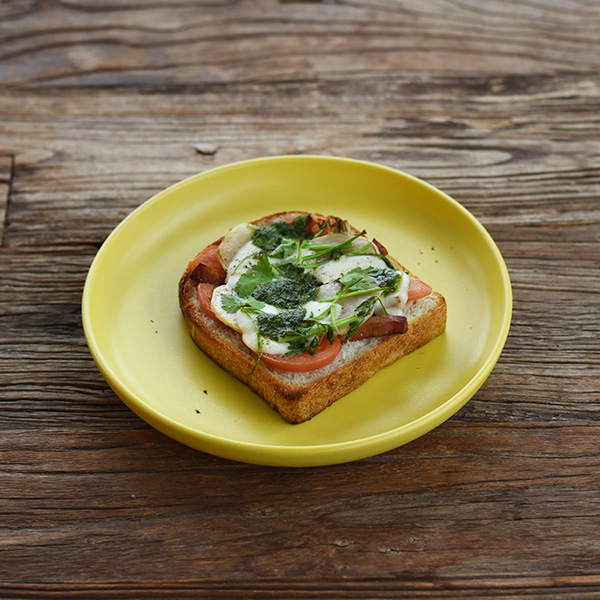 3.パンの上にトマト、②、食べやすく切った大根菜、モッツアレラの順でのせる。