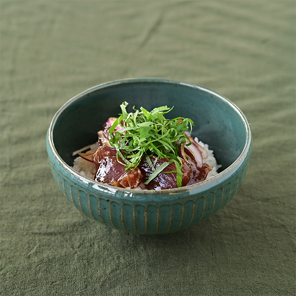 そろそろ新米の季節。手軽にできる丼を形状の違う器で盛り比べました。