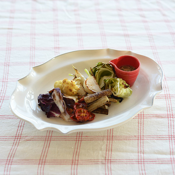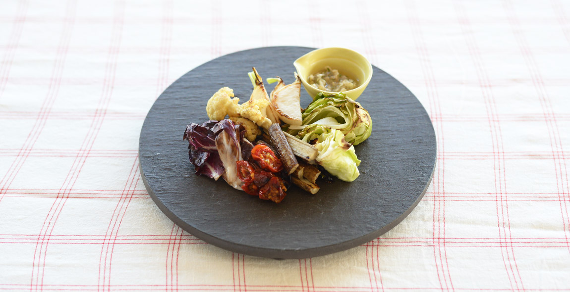 1.カットした好みの野菜に塩、オリーブオイルをふりかけ、オーブンでグリルする。