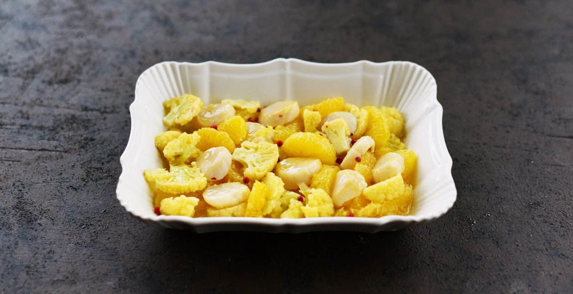 ホタテとカリフラワーの甘夏マリネ