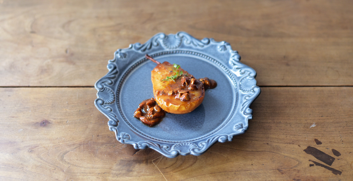 洋梨の可愛らしい形をそのまま生かした温かいデザート