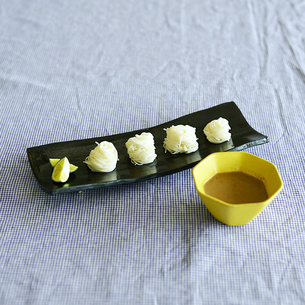 今回のポイントは器の形。シンプルな料理ですが選ぶ器で印象が違ってきます。 平皿はシンプルで素朴な感じがしますが、氷水を張った深鉢を使うと存在感が出ます。 すっきりと立ち上がったシルエットはクールな雰囲気、丸みのあるシルエットを選ぶと柔らかい印象になります。 普通の盛りつけに飽きたり、少量を盛りつけたい時などは細長い器を使うのも新鮮です。