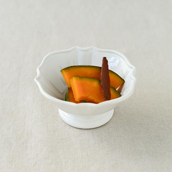 シナモンの甘みの効いたピクルスを形状の違う器で盛り比べました。