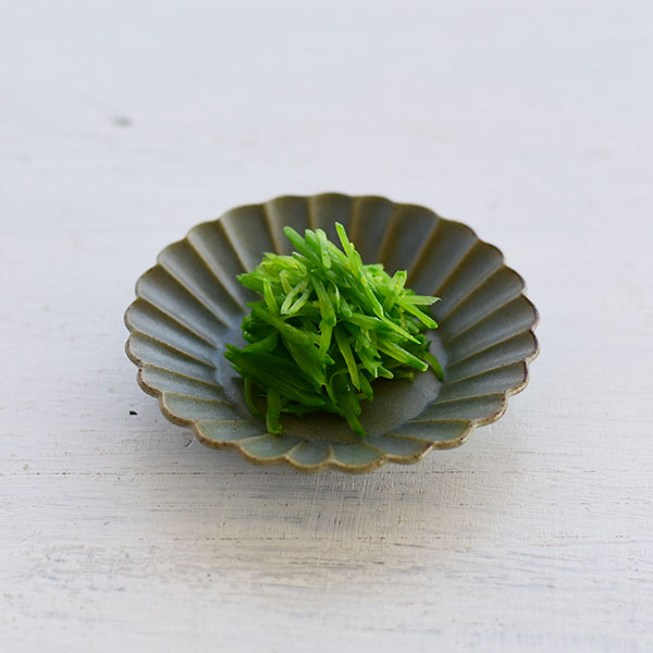 今回のポイントは器の形。選ぶ器の印象で料理の見え方が違ってきます。 丸皿はでシンプルで素朴、長角皿は個性を感じながらもほっとするような優しい印象がします。 曲線のきれいな角皿は、スタイリッシュな雰囲気。 レリーフの小皿は味わいのある表情で、存在感のあるひと品になります。