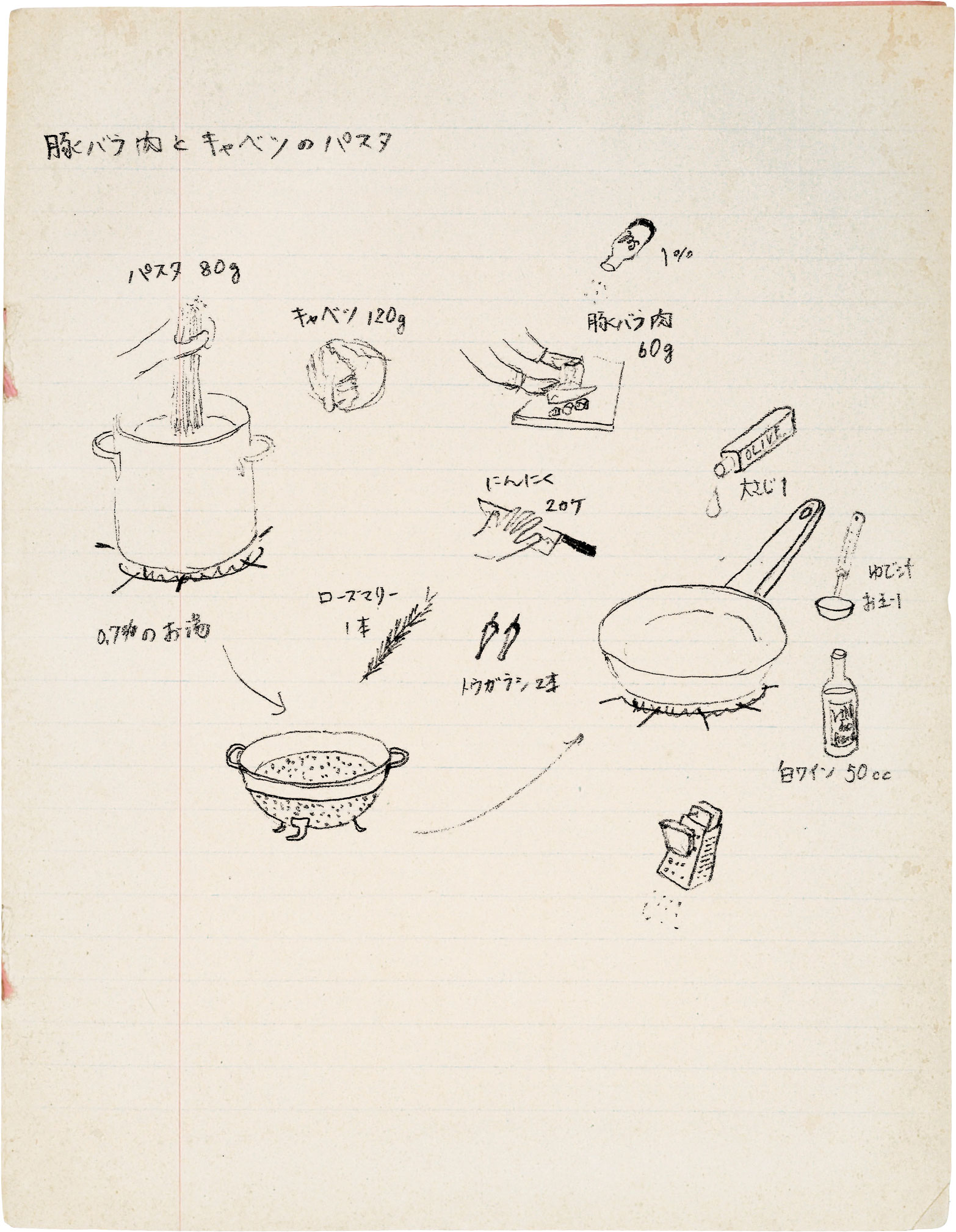 豚バラ肉とキャベツのパスタ