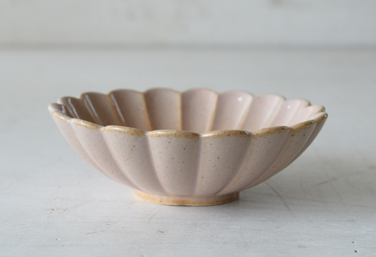 縁や花びらの筋など、粉引が薄づきな部分からは地の少し黄みがかった白土がのぞいています。