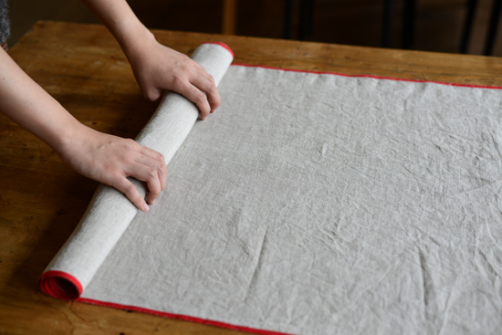 テーブルランナーの仕様として 両端が耳仕上げになっていることはとても実用的です。