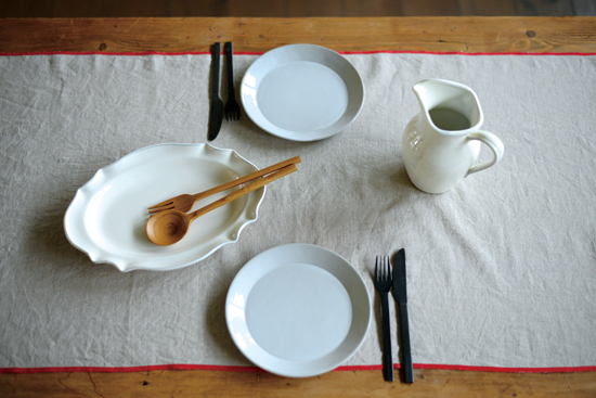 いつもの食卓にも気取らず手軽にテーブルランナーが使えます。