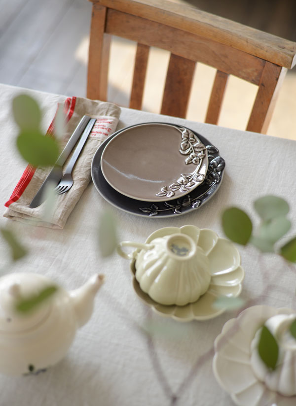 凹凸装飾が魅力の食器を使うとき、気になるのが重なり具合。