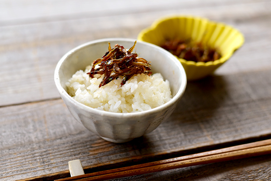 みりん、生姜などで甘辛く煮詰めた佃煮。