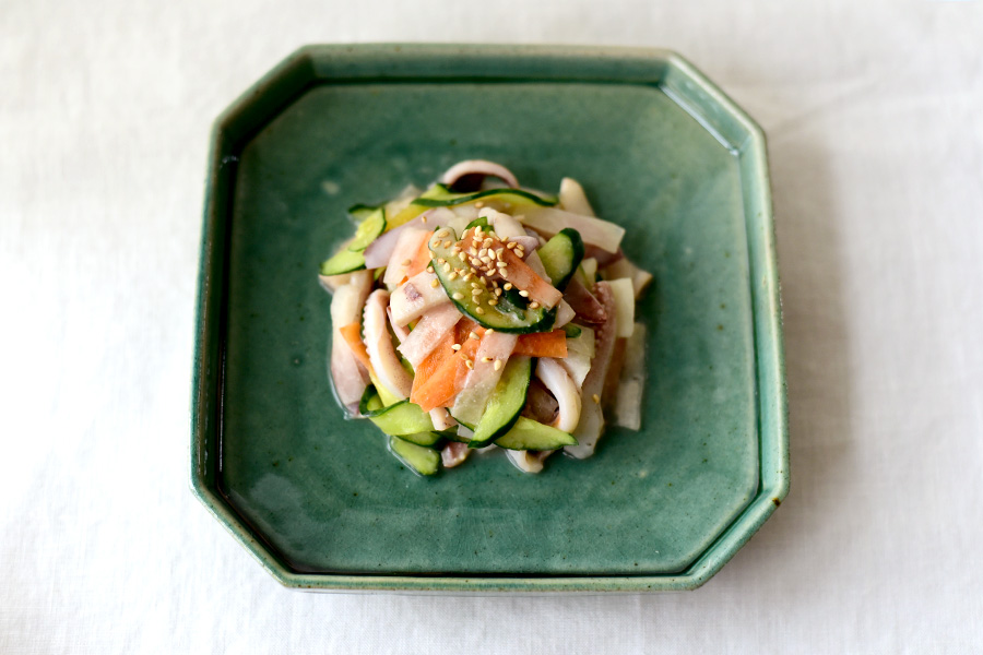 イカや魚などの魚介類を用いた酢味噌あえです。