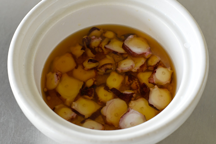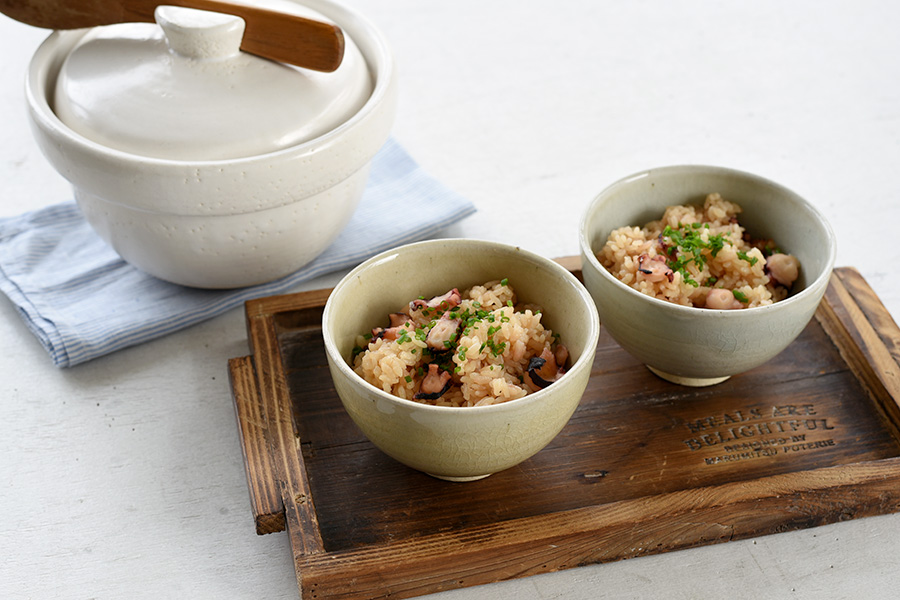 たこをぶつ切りにし、炊き込みご飯にした「たこめし」。