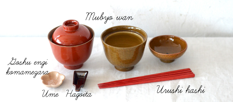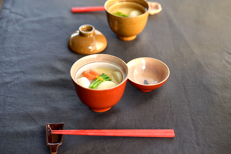 六瓢と朱色のお箸で、お正月らしく縁起良くいただきます。