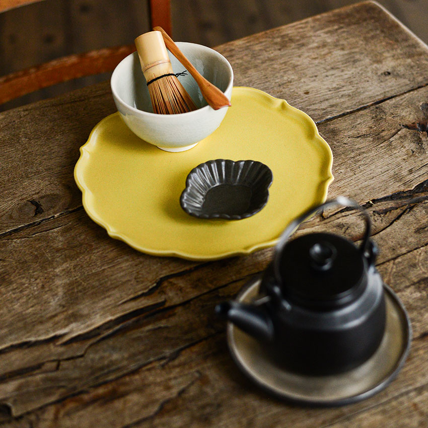 マルミツポテリの器を茶道具や花器に見立てた