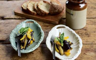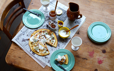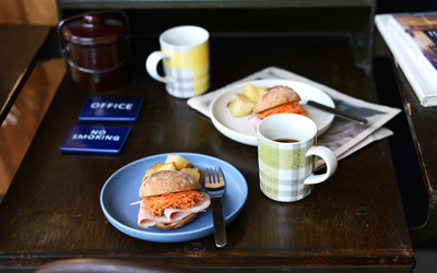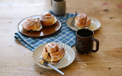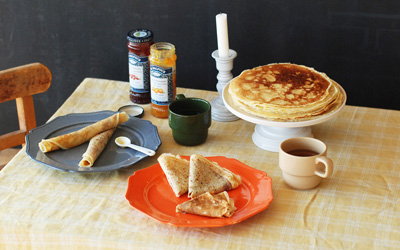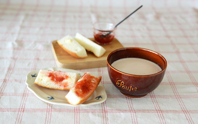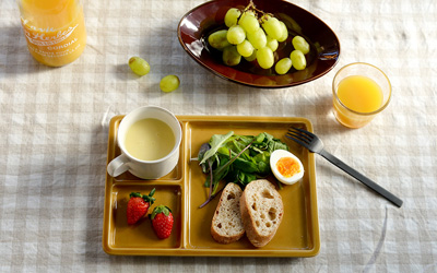 秋めいた朝、アメ色のプレートがお似合いの朝食