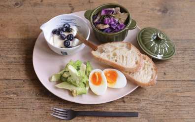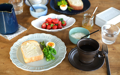 シンプルなプレートで食材の彩を楽しむ朝時間