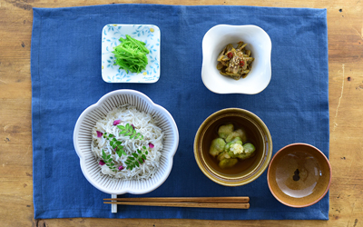 涼し気な食器とクロスで楽しむ夏の和朝食