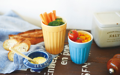 色鮮やかなカップと野菜で気持ちもすっきりな朝