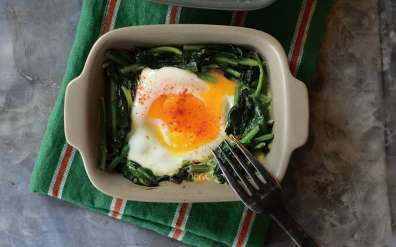 可愛らしい見た目の、ほうれん草の巣ごもり卵
