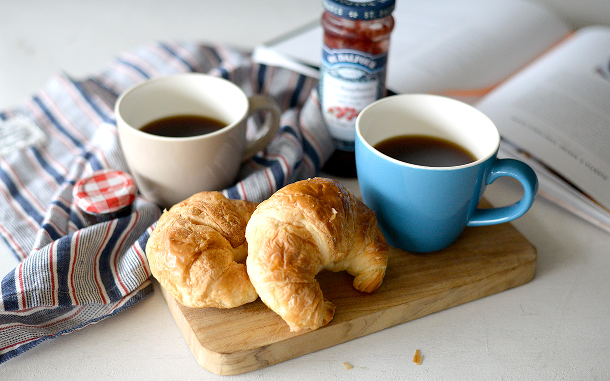 クロワッサンとフルーツを楽しむ朝