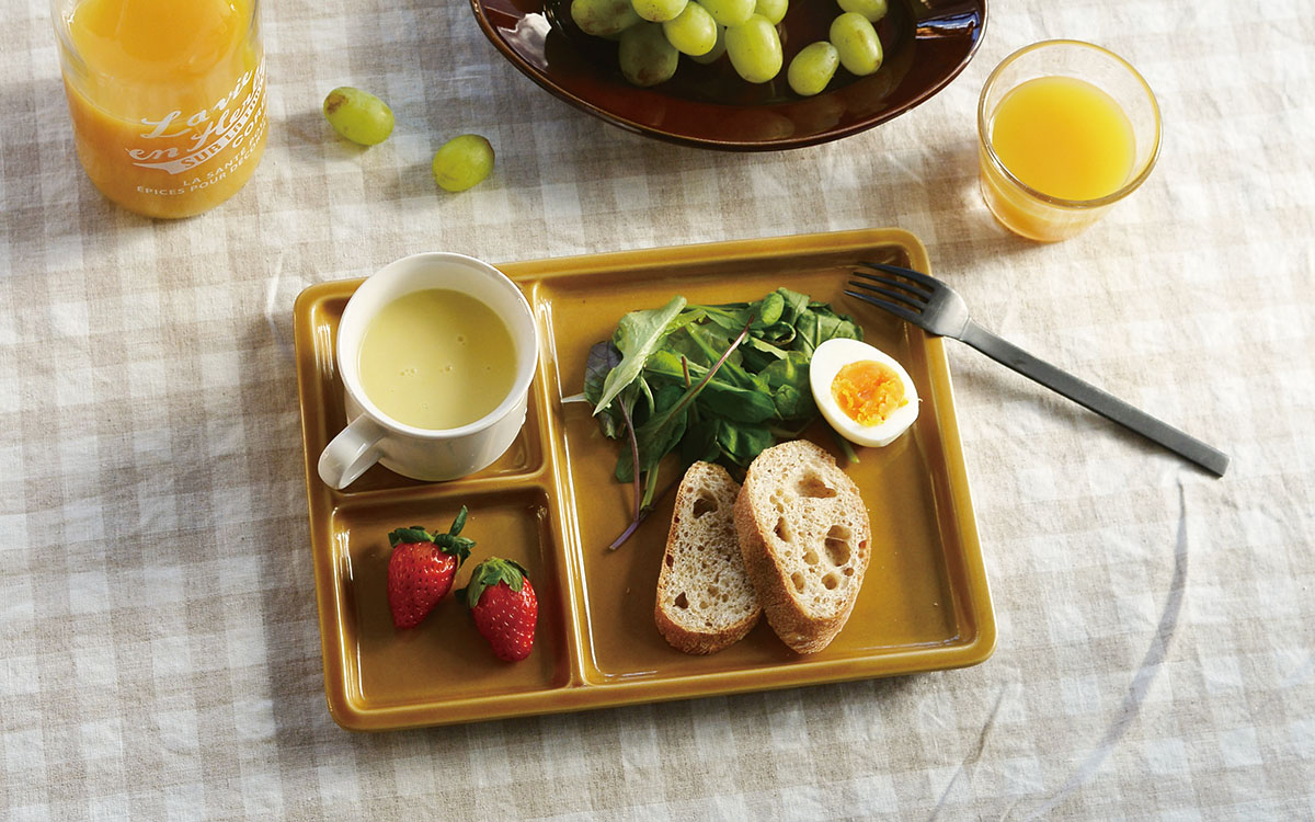 パンやオムレツの横に、サラダやスープカップも一緒に盛りつけがしやすい。テーブルにも変化がでるので、丸形の器が多い方にはオススメ。