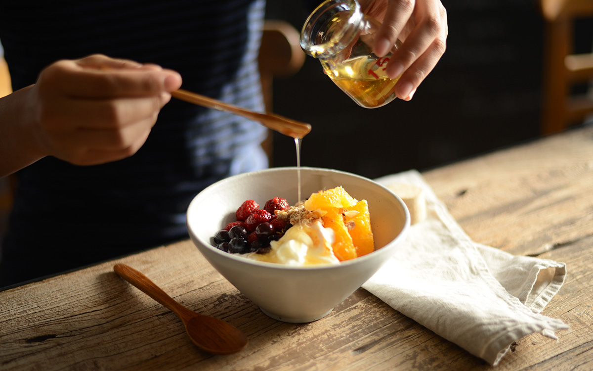 土の温かさが感じられるラグマンボールに、ヨーグルトとたっぷりのフルーツを盛りつけたら相性抜群!