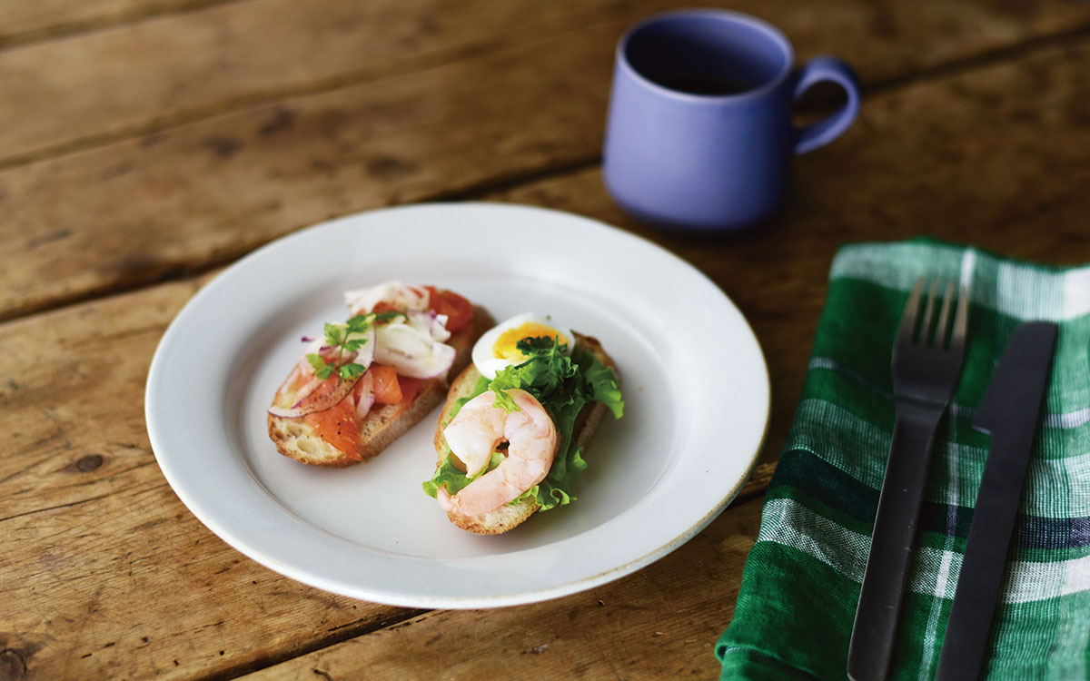 見た目に華やかなオープンサンドに気分も上がる朝