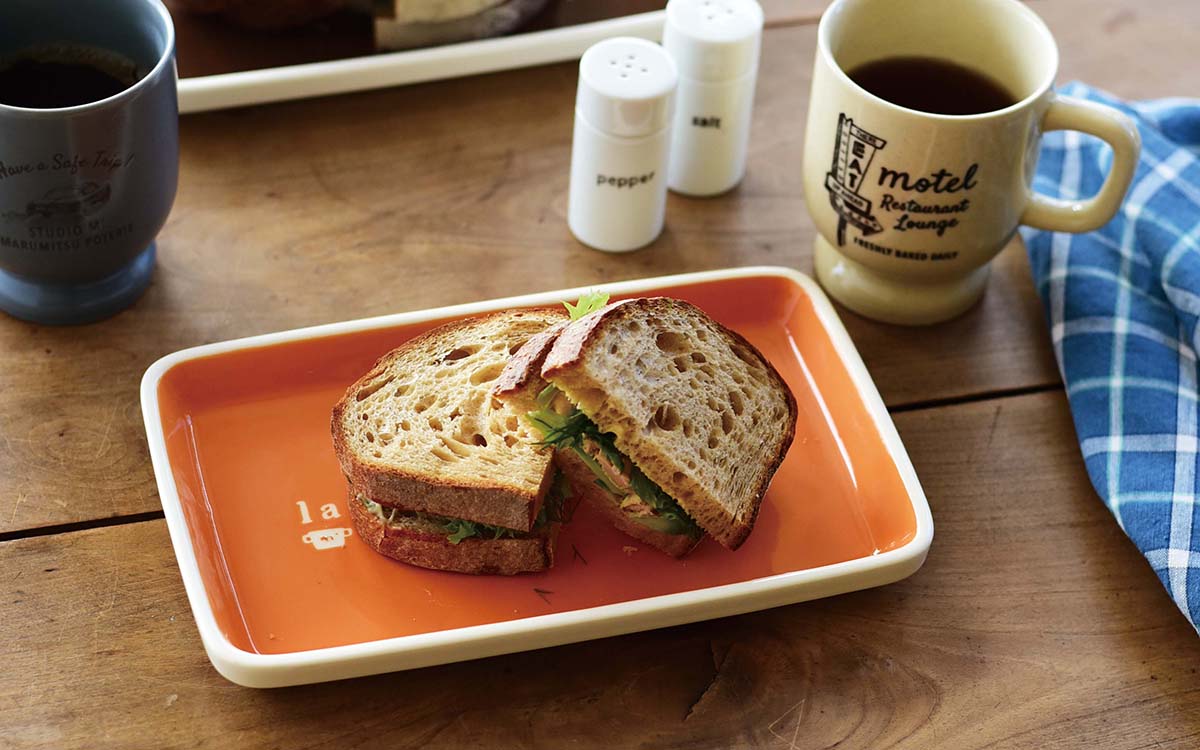 小麦にこだわった焼きたてパンは、シンプルなサンドイッチでいただきます