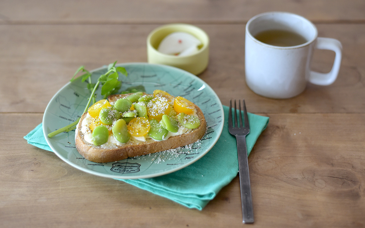 こんがり焼いたトーストをそのままのせても、見映えのいいプレート。他にもオムレツとサラダを盛り付けたり、朝ごはんにちょうどいいサイズ。