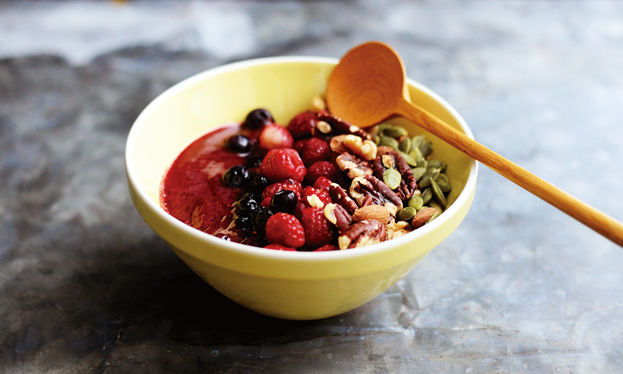 鮮やかなボウルが似合うフルーツグラノーラ