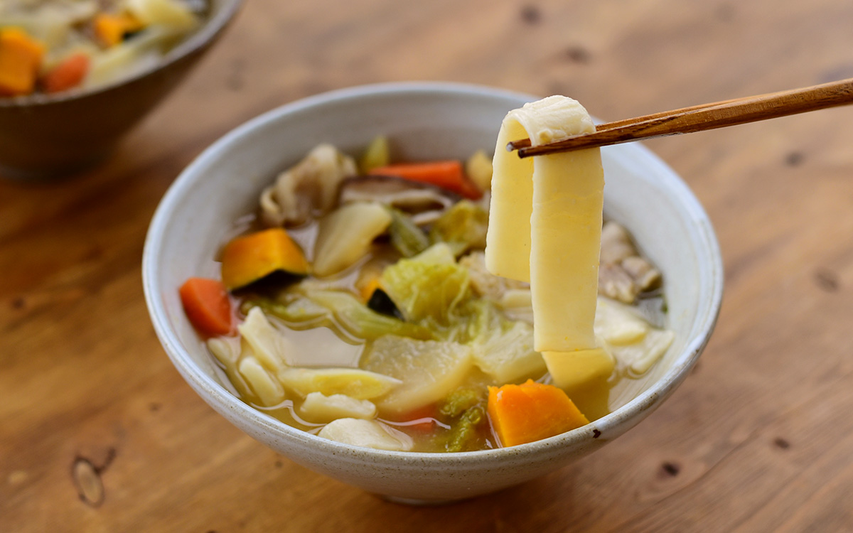 少し肌寒い朝は山梨の郷土料理「ほうとう」でホクホクに。