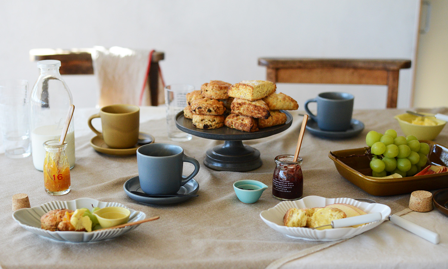 焼き菓子を囲む朝の食卓