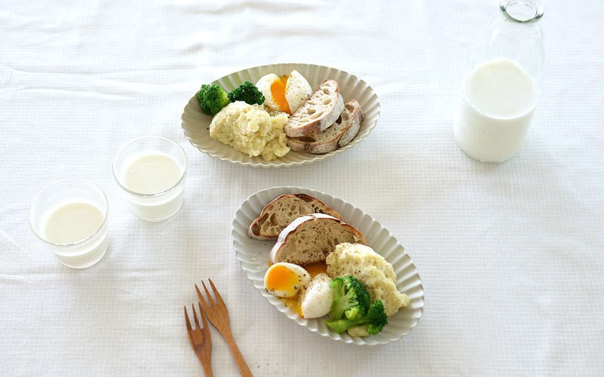 華やかなオーバルプレートで盛付けを楽しむ朝