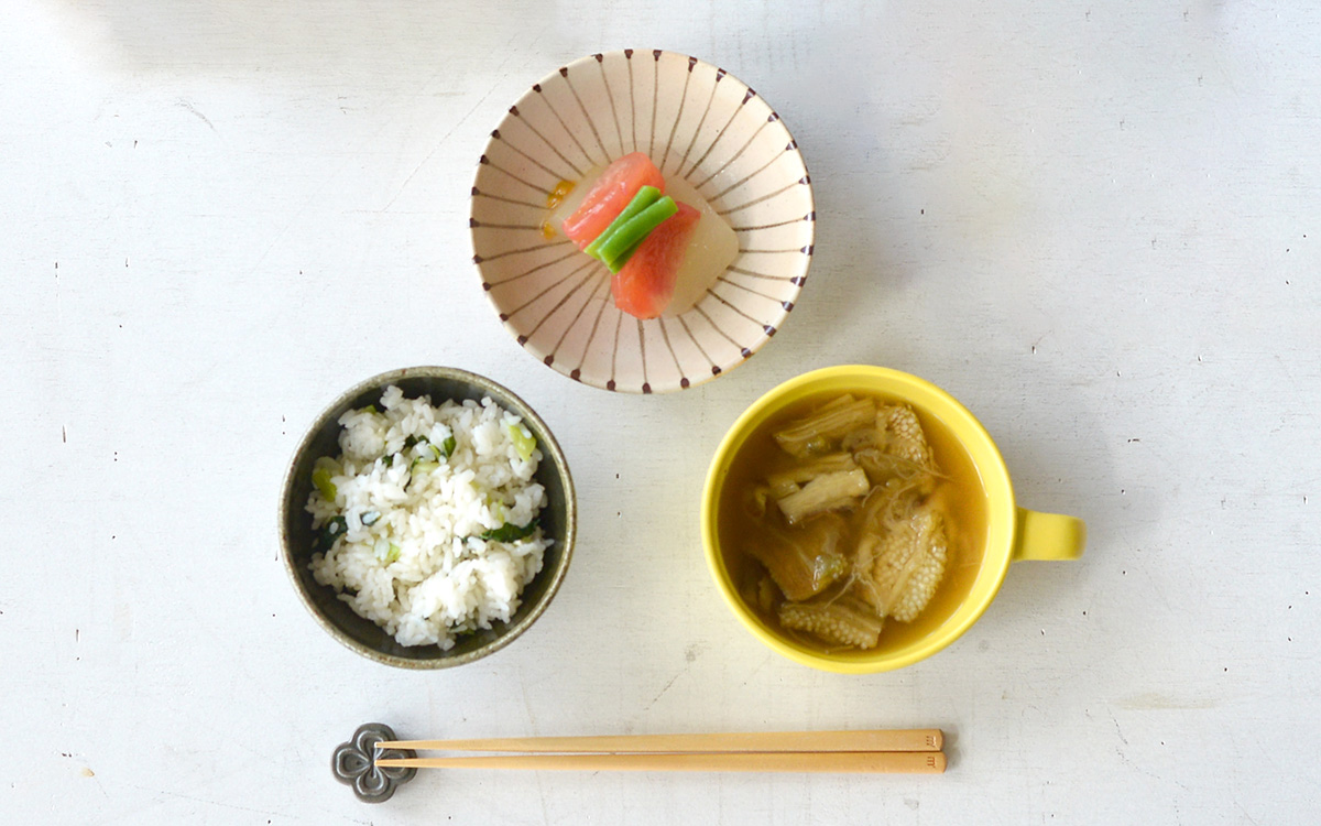 簡単だけれども一品一品丁寧に作った朝ごはんを、素朴で存在感のある器でゆったり味わう。