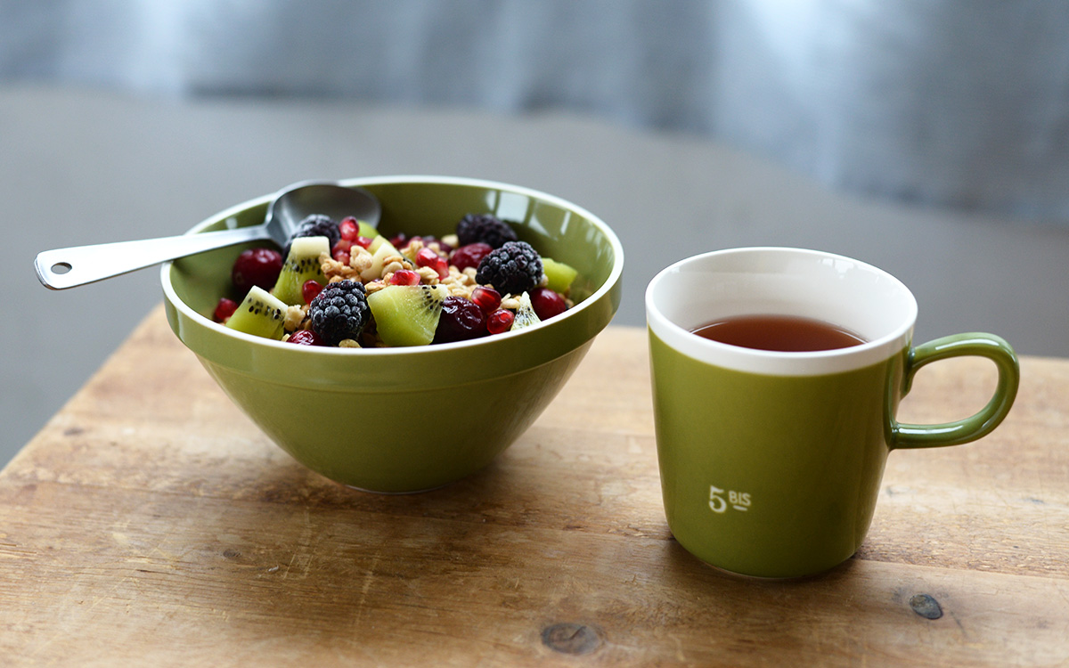 鮮やかなボウルが似合うフルーツグラノーラ