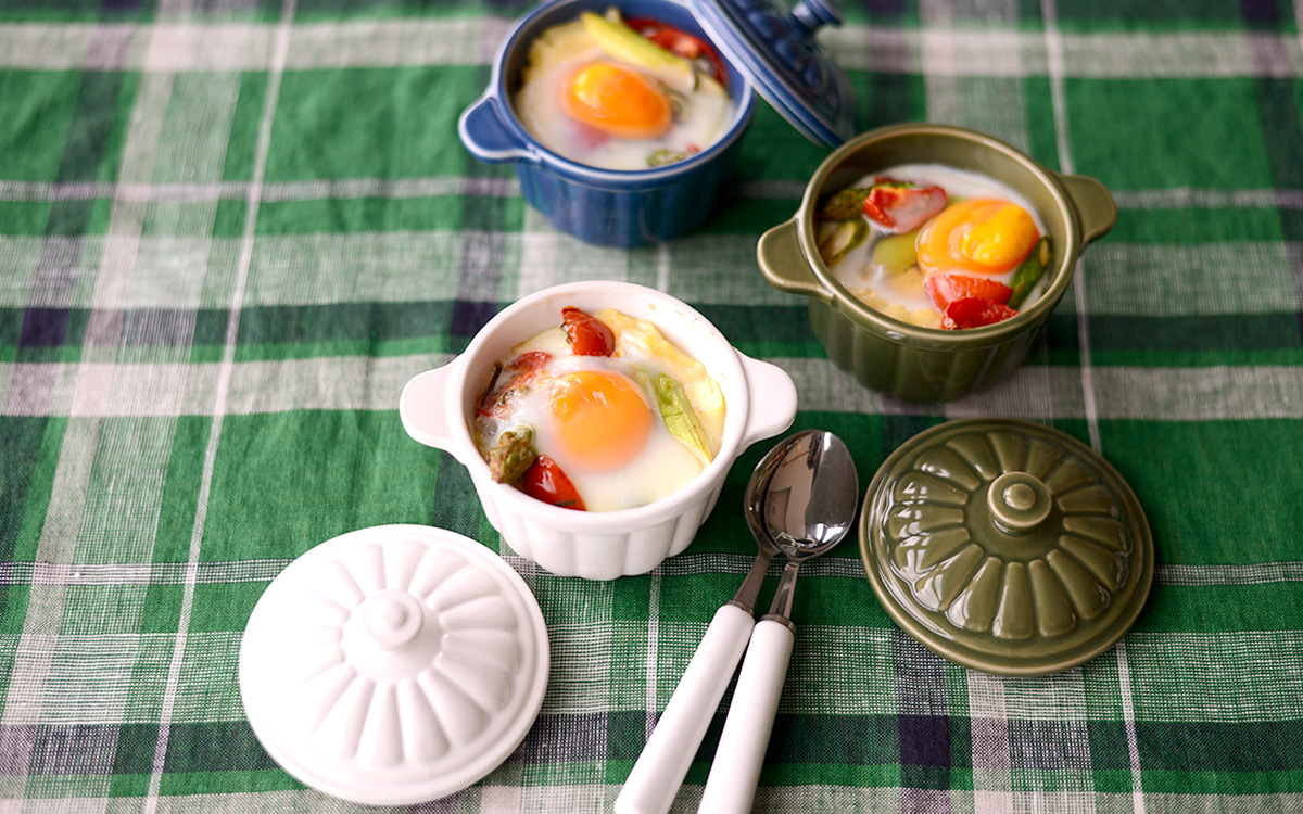 ココットはサイズ感も可愛らしく、ワンプレートにもおさまりやすい。ヨーグルトやフルーツ、エッグスラットなど朝ごはんのもう1品に。
