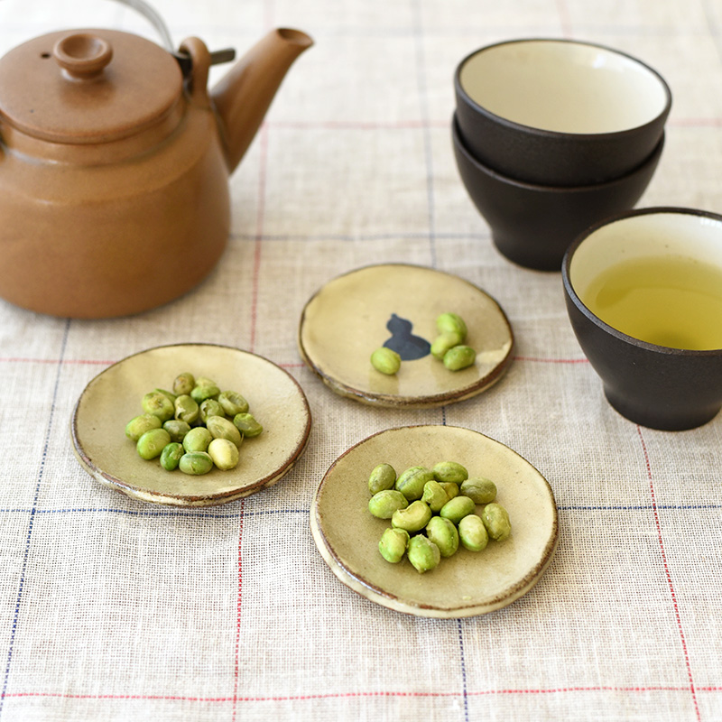 おそろいの色づかいのプレートにのせて、まるい縁どりでくるりと囲む。