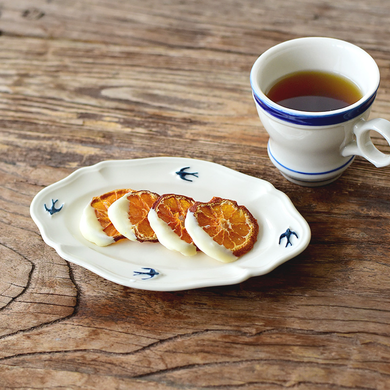オーバル型のお皿にきれいに並べると、ツバメもうれしそうに飛びまわる。