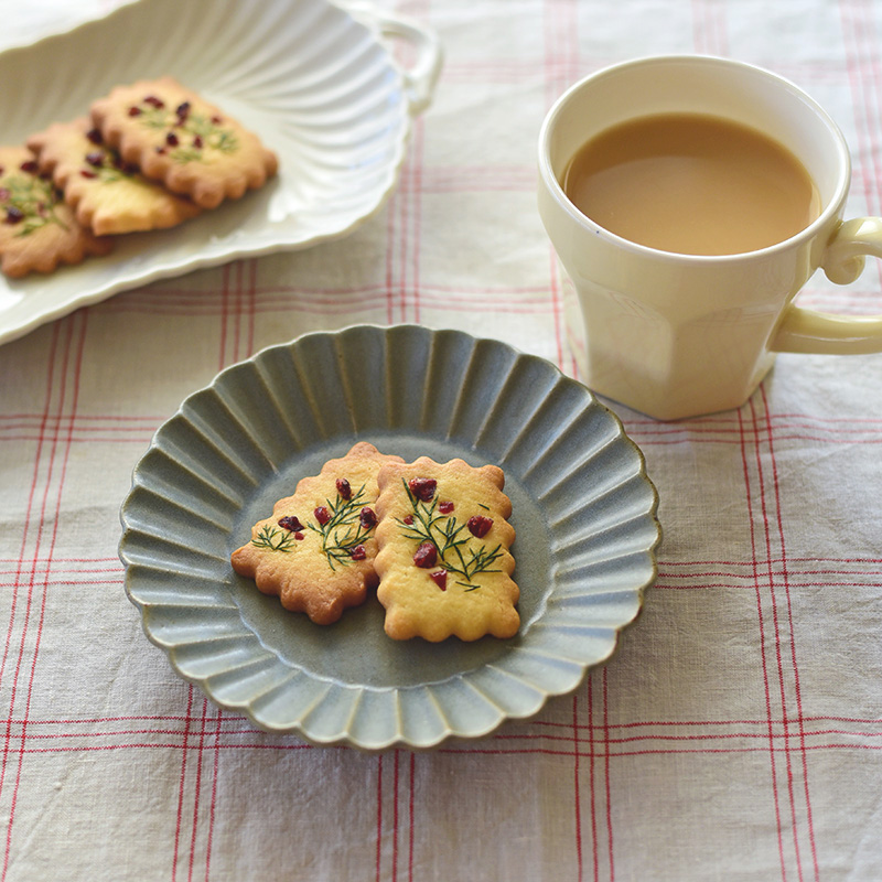 ふんわりした形のシックなプレートにのせて、プチ贅沢なティータイム。