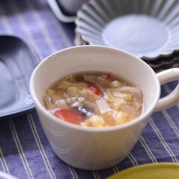 ■酸辣湯(サンラータン) ・・・酸味が効いた具沢山のスープです。クセになる美味しさです。