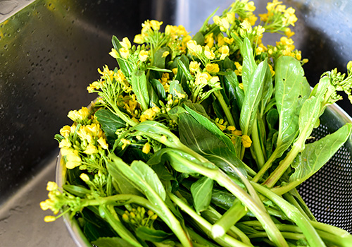 こちらは菜の花のだし巻き卵に。