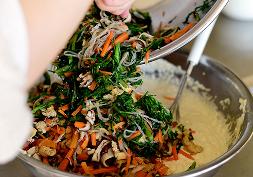 こちらは味付けをして、野菜を混ぜて白和えになります。