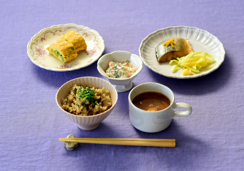 春らしいコーディネートで楽しんだ「立春の一汁三菜」。