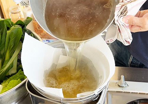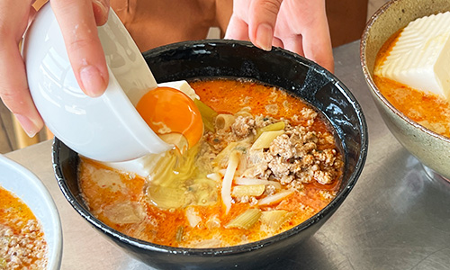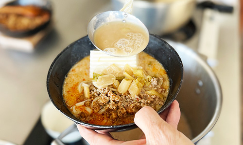 ここに豆乳やネギを加えてベースのお汁が完成です。