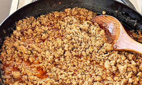 前日に作っておいた肉味噌。
