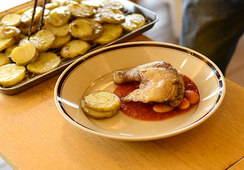 今回のメインディッシュは、骨付き鶏もも肉のコンフィ。