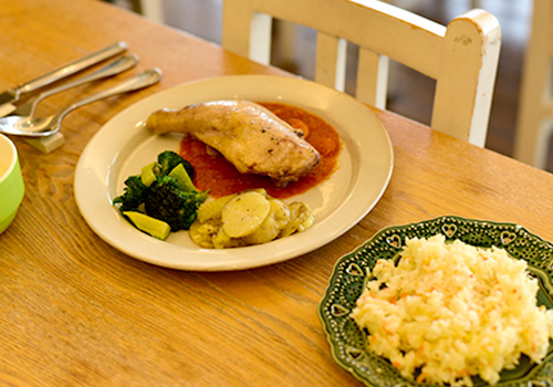 コンフィにした鶏肉はとっても柔らかく、口の中でほろほろになります。