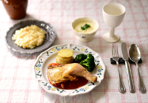 付け合わせのトマト煮や野菜も準備万端です。