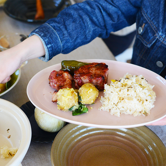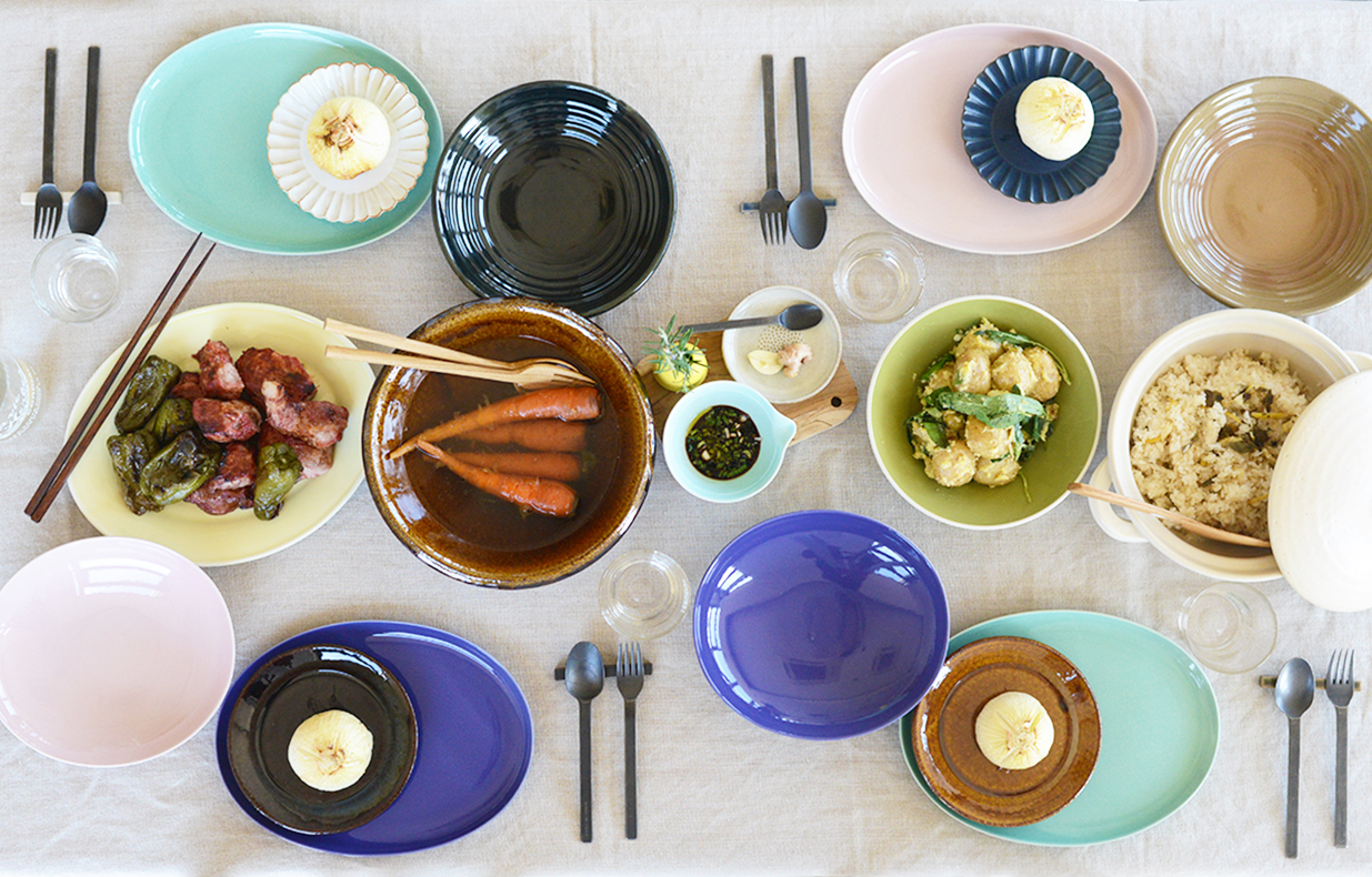 春らしい新作の器をたくさん使い、