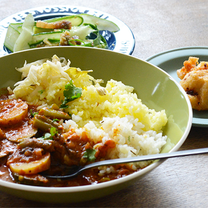 スパイスの香りが食欲をそそり、夏野菜をたくさん使った